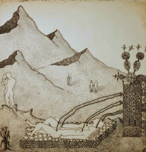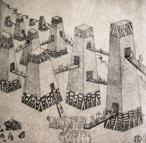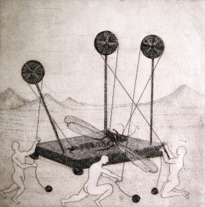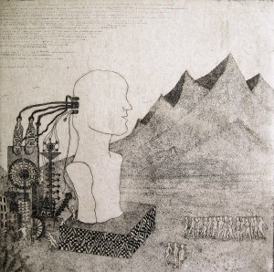 Misterio en el desierto. Aguafuerte. (Mistery in the desert. Etching). 20 x 20 cm. (7.8 x 7.8 inch)