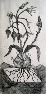 Flores venenosas. Punta seca. (Poissonous flowers. Dry point). 8 x 6 cm. (3. x 2.3 inch)