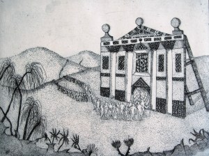 El templo de la felicidad. Aguafuerte. (The temple of happiness. Etching). 16,3 x 12,2 cm. (6.4 x 4.8 inch)