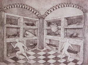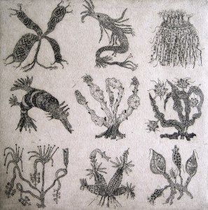 Especies marinas desaparecidas. Aguafuerte. (Missing marine species. Etching). 20 x 20 cm. (7.8 x 7.8 inch)