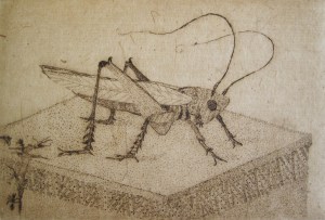 Saltamontes. Aguafuerte. (Grasshopper. Etching). 12,5 x 8,3cm. (4.9 x 3.2 inch.)