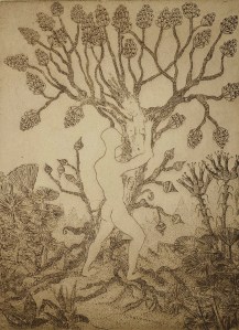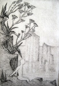 La flor de la sabiduría. Aguafuerte. (The flower of wisdom. Etching). 20 x 10cm. (7.8 x 3.9 inch)