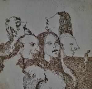 Personajes. Aguafuerte. (Characters. Etching) 20 x 20cm (7.8 x 7.8 inch).