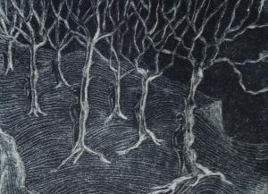Noche en un bosque. Manera Negra. (Night in a forest. Mezzotinto) 17 x 13 cm. (6.8 x 5 inch).