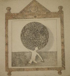 Atlas. Aguafuerte y lápices. (Etching and pencils). 20 x 20 cm. (7.9 x 7.9 inch)